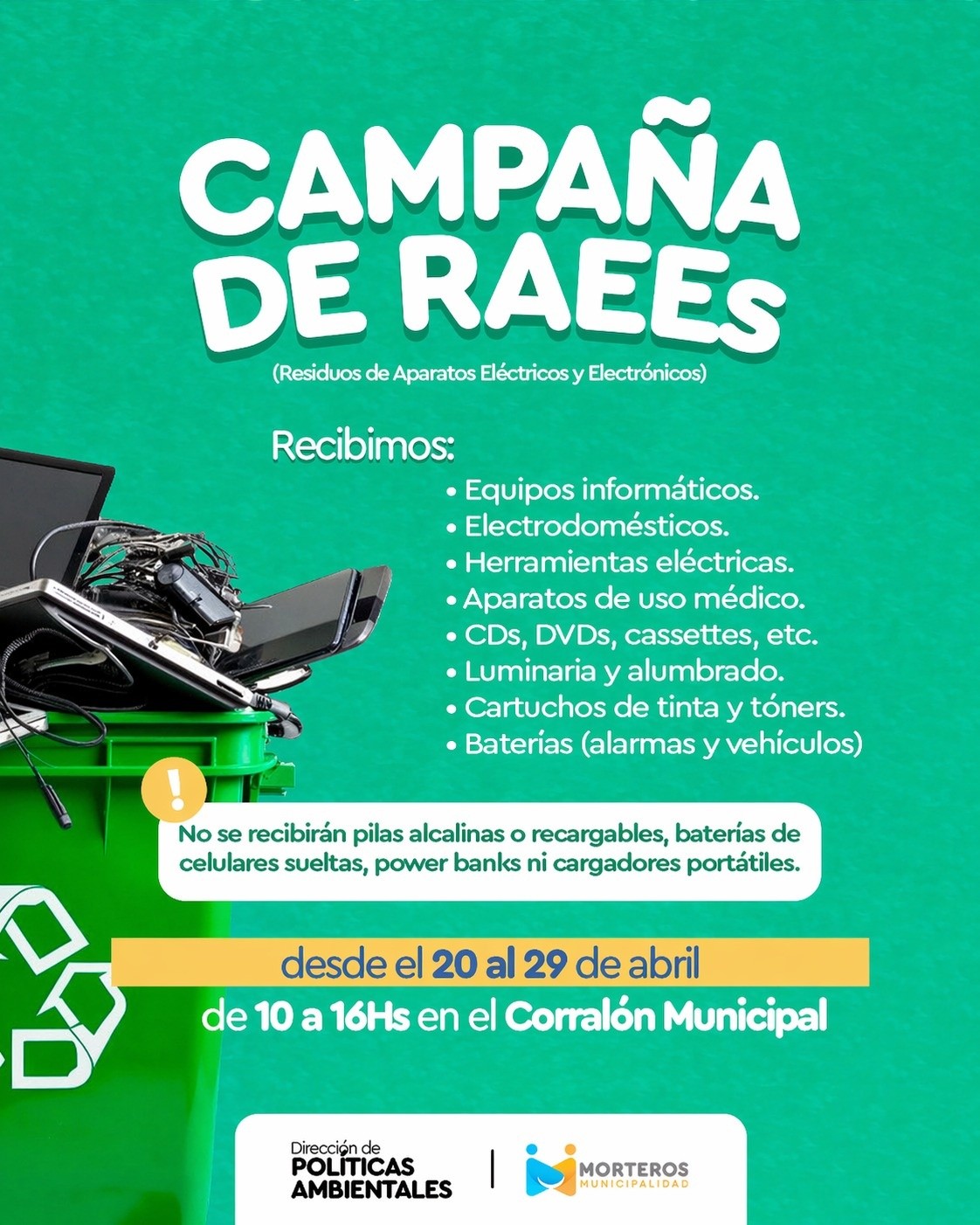 La Municipalidad de Morteros, a través de la Dirección de Políticas Ambientales, informa que se ha decidido extender la Campaña de Recolección de Residuos de Aparatos Eléctricos y Electrónicos (RAEE),…