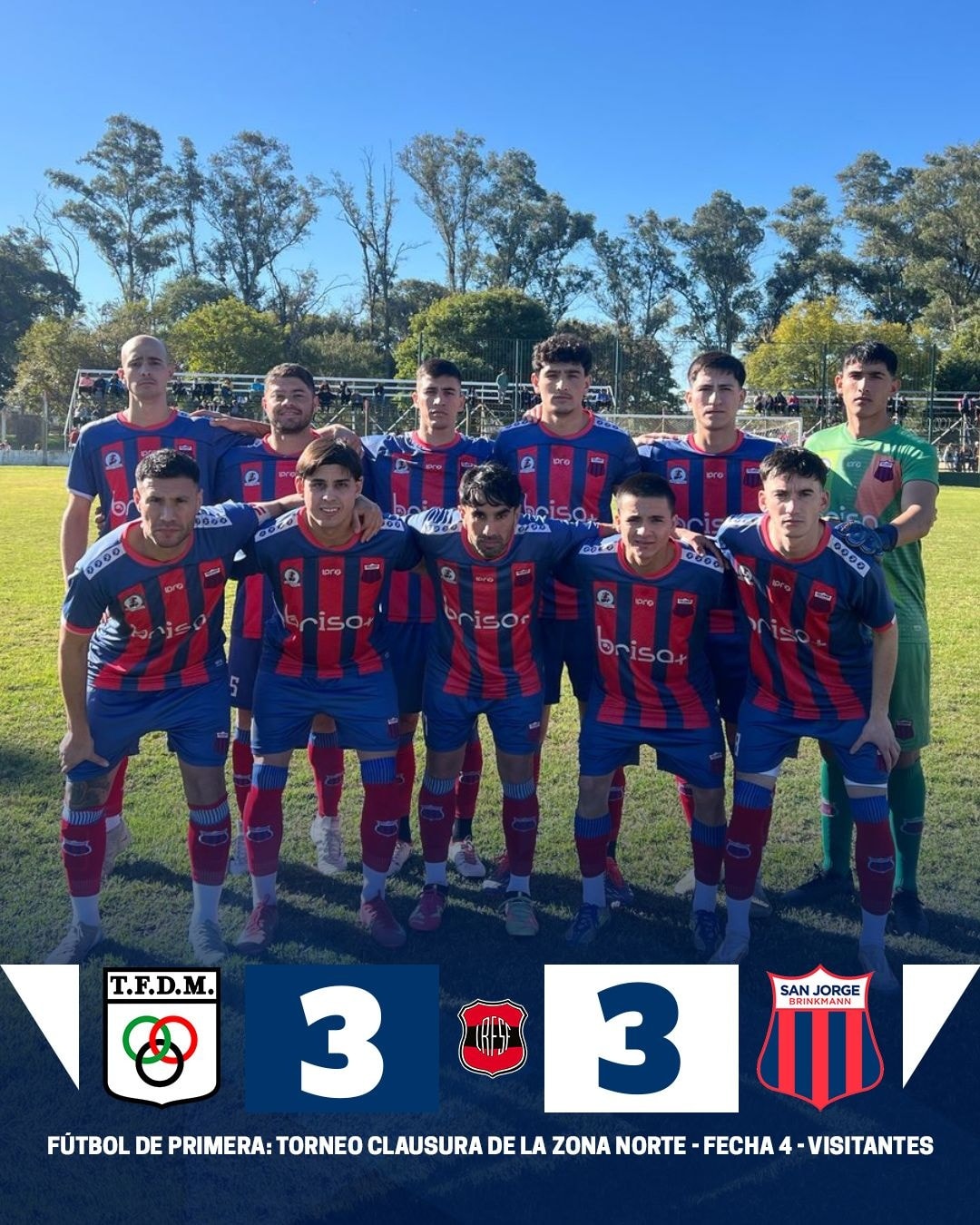 Por la cuarta fecha del «Clausura de la Liga Regional de Fútbol Zona Norte, Tiro Federal pudo mantener la punta al igualar sobre el cierre del partido a San Jorge de Brinkmann.