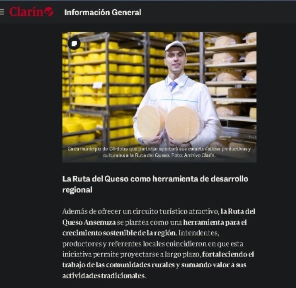 El proyecto Ruta del Queso, impulsado de manera articulada entre la ciudad de Morteros y distintas localidades de la región, continúa consolidándose como una propuesta estratégica para el desarrollo regional y recientemente alcanzó un nuevo hito: su difusión en un medio de alcance nacional como el diario Clarín.