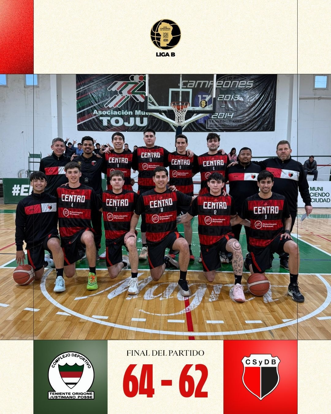 Complejo de Justiniano Posse se quedó con el invicto rojinegro, al ganarle por 64-62. Fue en el marco de la fecha 6 del Provincial.