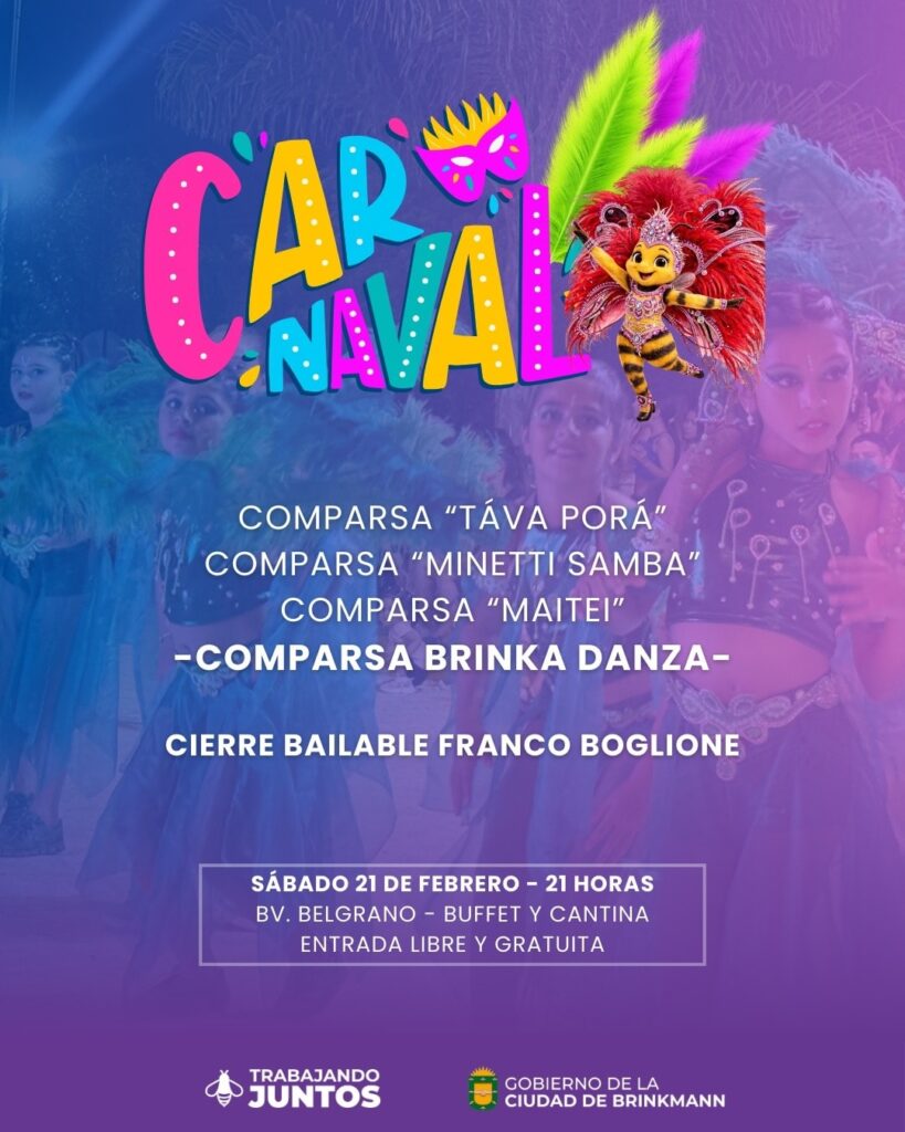 El sábado 21 de febrero, Brinkmann vivirá su noche central de Carnavales 2026. En el Corsódromo de Bv. Belgrano tendrá lugar el desfile de Comparsas y baile popular, con entrada libre y gratuita para todo público. Invitación Navegación de entradas Autoridades Municipales visitaron escuelas por tareas de mantenimientoEl Intendente Actis acompañó a Gustavo Tevez en la entrega de aportes a Instituciones locales