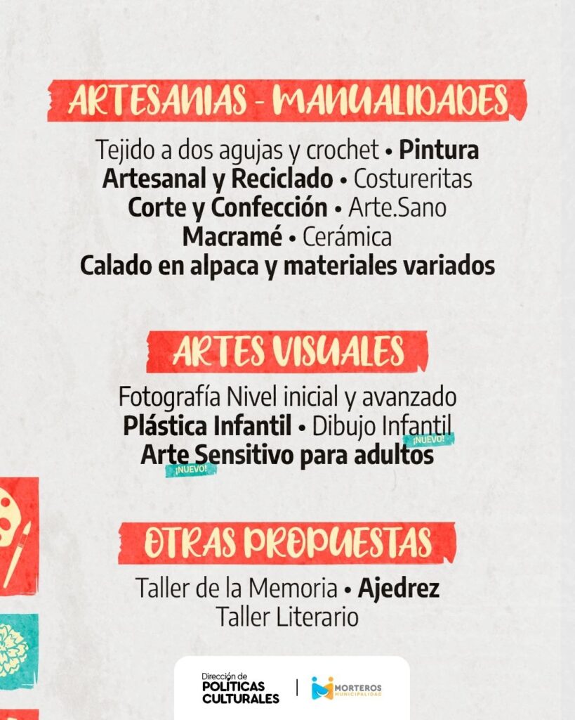 Desde el Centro Cultural de Morteros, se informa que están abiertas las inscripciones para las diferentes propuestas.