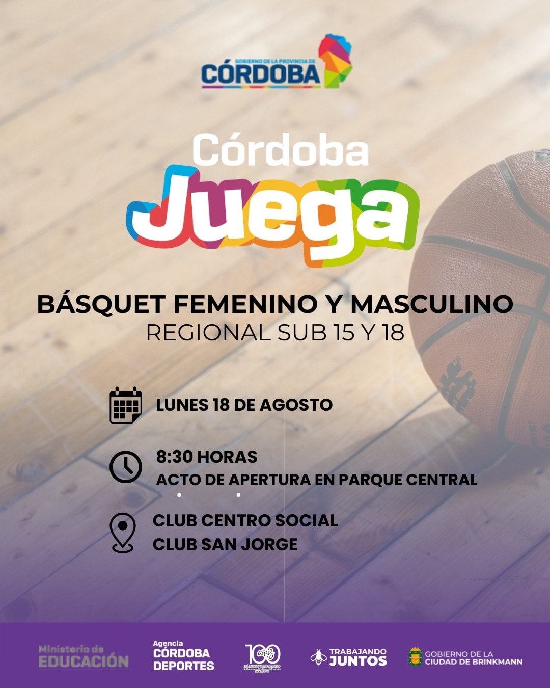 Este lunes 18 de agosto, llega a Brinkmann el Programa Córdoba Juega, esta vez a través del basquet masculino y femenino.