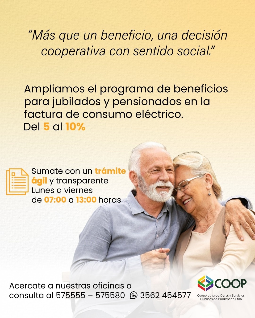 Porque pensamos en nuestros jubilados, _“Más que un beneficio, una decisión cooperativa con sentido social.”