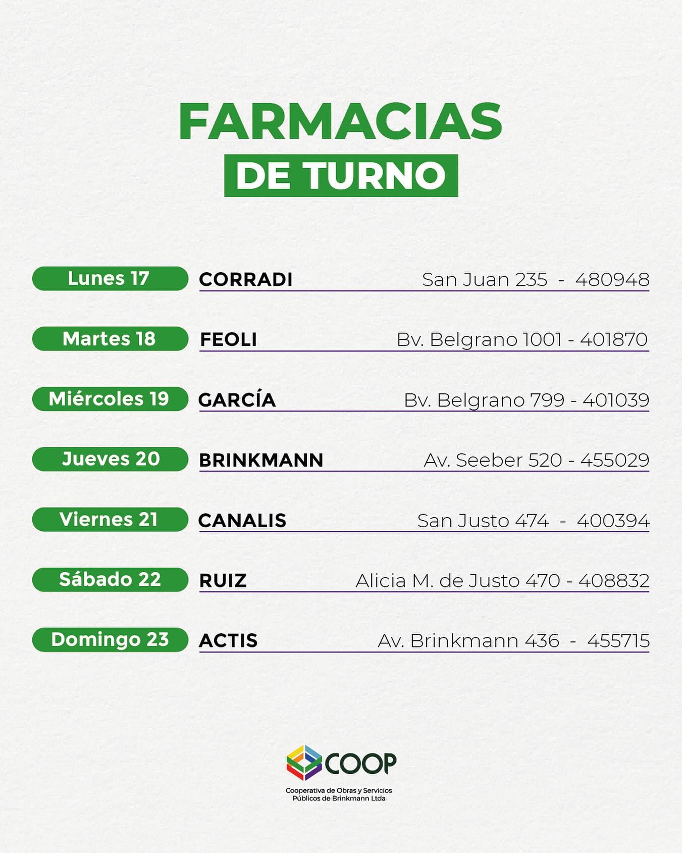 Compartimos farmacias de turno hasta el día domingo 23 de noviembre. Navegación de entradas Farmacias de Turno