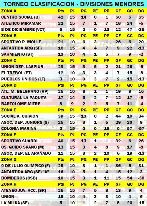 Resultados y Posiciones Torneo Clasificatorio