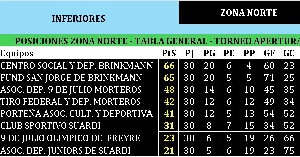 Se viene el Clásico Brinkmanense en Divisiones Inferiores de la Liga Regional Zona Norte. El Torneo Apertura tiene a ambas Instituciones en lo más alto de la Tabla, en la sumatoria general.