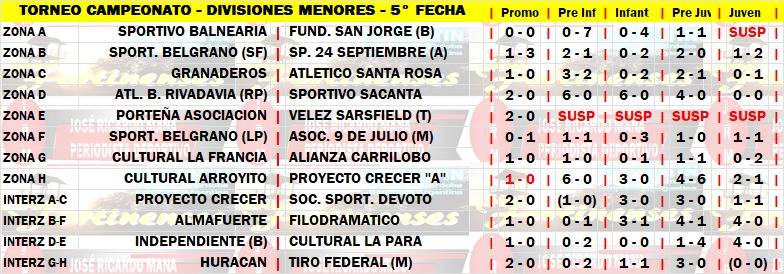 – Infantil: victoria 6 a 0 (Valentino Pessuto x2, Valentino Bulacio, Lautaro Gioino, Lisandro Ibáñez y Sebastián Bosio).