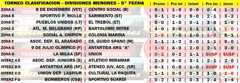 Infantil: 0-4, Lisandro Zafalon x 2, Isaías Ruiz y Alan Ambroggio.