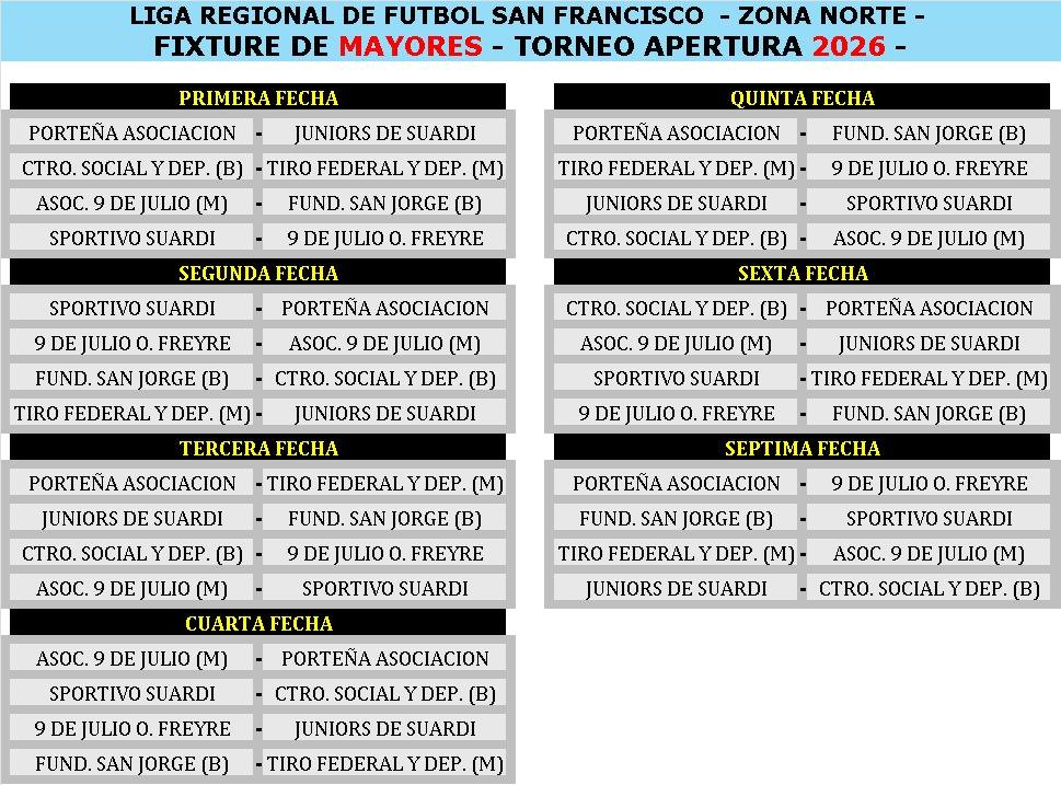 En la sede de la Liga Regional de Fútbol de San Francisco, se llevaron a cabo los sorteos de las diferentes zonas de los torneos del corriente año.