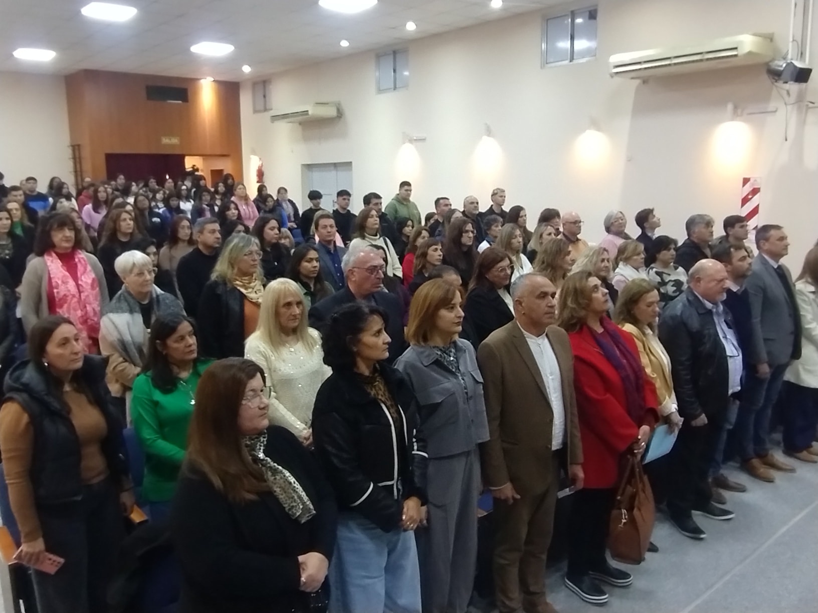 Fue en un acto concretado en el TEATRILLO MUNICIPAL. Todo dio comienzo con el ingreso de Banderas de Ceremonias, y a continuación los discursos alusivos.