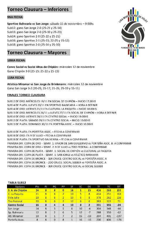 Con los últimos partidos pendientes, ya están definidas las posiciones en cada una de las categorías de la Liga Morterense de Voley.