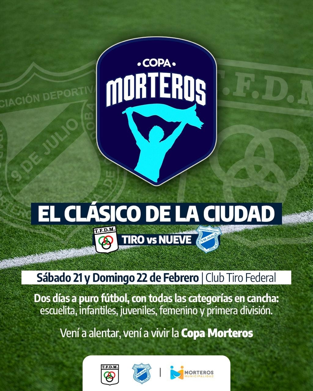 Se acerca una nueva edición de la Copa Morteros de fútbol, organizada por la Municipalidad de Morteros, entre Tiro Federal y Deportivo Morteros y Asociación Deportiva 9 de Julio. Nuevamente todas las categorías, tanto de la rama masculina como de la femenina, se enfrentarán en el desafío del año en el Bautista Monetti.